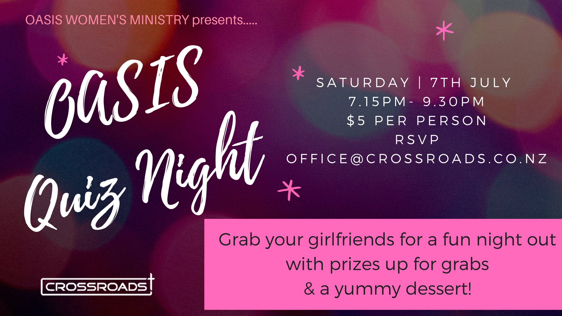 OASIS - QUIZ NIGHT Saturday, July 7, 2018 7:15 PM 9:30 PM 19:15 21:30 Google Calendar ICS Name * Name First Name Last Name Email Address * Mobile Number Thanks for registering….it is going to be a great night!